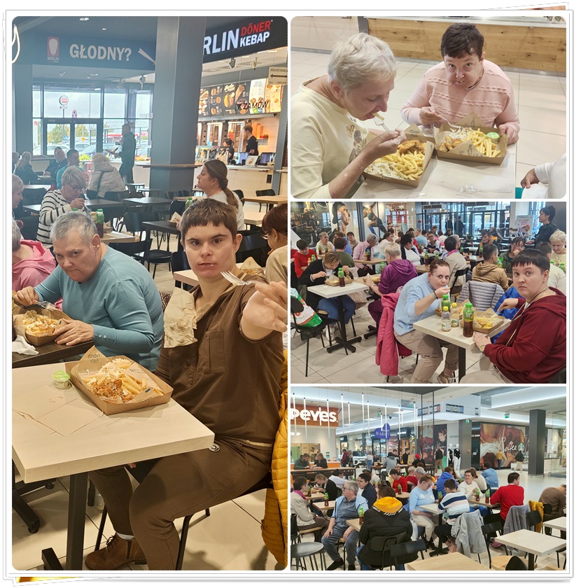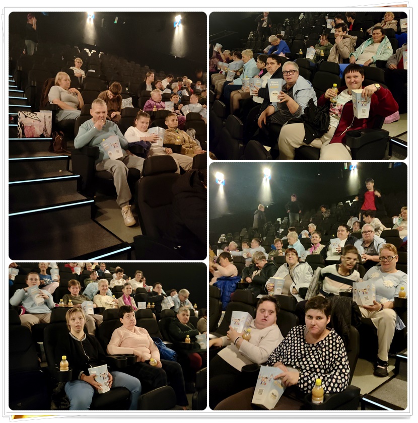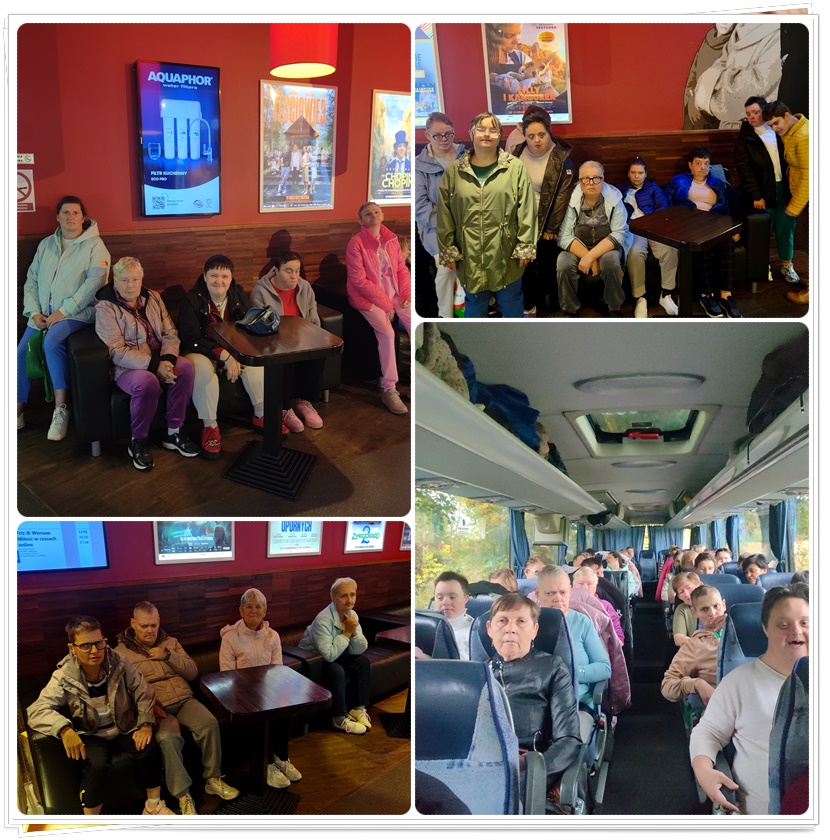 Dnia 09.10.2025r. bieżącego roku 36 podopiecznych z opiekunami wybrali się do kina Helios w Szczecinie, gdzie mieliśmy okazję zobaczyć najnowszy film „Teściowie 3” wyreżyserowany przez Jakuba Michalczuka. Przed seansem zakupiliśmy popcorn, colę a następnie zajęliśmy swoje miejsca w sali kinowej. Po chwili zgasły światła i w skupieniu zaczęliśmy oglądać film. To było niezwykłe przeżycie, przedstawione sceny działały silnie na emocje każdego widza w sali. Po skończonym seansie wszyscy wspólnie wybraliśmy się do restauracji Nort Fish na przepyszny obiad, gdzie zaserwowano nam zestaw z panierowanymi filecikami z dorsza czarnego z frytkami i surówką colesław. Dzięki temu wyjazdowi umocniliśmy nawyki kulturalnego zachowywania się w miejscach publicznych, a także integracje i wzmacnianie więzi koleżeńskich.